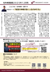 講師プロフィール 石原尚幸 主催:株式会社プレジデンツビジョン http://www.presidents-vision.com お問い合わせ先 presidents@presidents-vision.com 時間に追われることなく、自分のやりたいことを実現できる! そのための秘訣を余すことなくお伝えします わずか6ヶ月で顧問先の業績をV字 回復させる現役敏腕コンサルタント。 ㈱プレジデンツビジョン代表取締役社長 参謀手帳開発者 【著書】 『社長! お金は「ここだけ」押さえ れば会社は潰れない』ダイヤモンド社 『父が子に伝える13歳からのお金に一生 困らないたった3つの考え方』三笠書房 常に複数のプロジェクトを抱え、 一つひとつのプロジェクトの進捗を管理しきれず、 気がつくと直前までやるべきことがやりきれていない… 行き当たりばったりで、付け焼き刃の仕事になっている… 月額顧問料20万円で10社以上の中小企業をサポー トしている。 月間実働平均80時間で常に10以上のプロジェクトを 動かし、収支トントンの顧問先を利益7千万 円超え(700倍)にするなど、短時間で圧倒 的な成果をだしている。 こんなお悩みをお持ちのビジネスリーダーが受講し、その悩みを解消してきた セミナーです。タイムマネジメント攻略セミナーでは、あなたの時間を取り戻し、 その時間を有効に使って仕事の成果が出せるタイムマネジメント術をお伝え します。 受講されたみなさんからは、 「時間をコントロールし質の高い仕事ができるよう になった!」、「諦めていた趣味の時間が取れるようになった!」といった成果 報告が多数届いています。 今年も、受講生さんからのリクエストを受けて、フォローアップのための朝会や 合宿も開催します。 セミナー会場でお会いできるのを楽しみにしております! もし今、あなたが時間管理に悩んでいるのであれば、同セミナーへお越しいた だくことで、同じ悩みを持つ仲間ともその解決策を見出せていけますよ。 ・下記会場にて開催いたします。 ・各会場共にリアルタイムでzoom配信 するのでご自宅からの受講も可能です。 開催地 2025年12月4日(木)14時~18時 広島オフィスセンター 第12会議室 広島 &zoom 2025年12月12日(金)14時~18時 ※詳細は参加者へ個別に案内します 新大阪 &zoom 2025年12月27日(土)13時~17時 ※詳細は参加者へ個別に案内します 品川 &zoom 新規受講者:35,000円(税別) 参謀‘s(過去受講者): 18,000円(税別) 受講費 各セミナー終了後、会場近くのお店 に移動して懇親会があります。 (希望者のみ)参加費5,000円程度実費 懇親会 後日、セミナー録画と配布資料を 配信します。 欠席対応 特典1. 参謀手帳(非売品)プレゼント! 特典2. 参謀手帳書き方サンプルをプレゼント! 特典3. タイムマネジメント攻略セミナー録画動画見放題 (1年間) 特典4. 特典5. Facebookの秘密グループ『参謀's』への参加権 特典6. Facebookでの講師への質問無制限! 特典7. 『参謀's 朝活☆自問自答会』参加権(無料) 特典8. 成果をあげる!フォローアップ合宿参加権 オフ会参加権(無料) 受講者特典 お申込みは QRコードから
