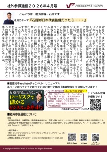 3.11東日本大震災の日に想う 中小企業が避けるべきリスクと対処法 お伝えできる専門内容~中小企業が取り組みたい石原式シンプルBCP~ TREND REPORT 2026年2月吉日 株式会社 プレジデンツビジョン ■そもそも「リスク」の定義とは? 投資の神様、ウォーレン・バフェット氏が「リスクとは、自分が何をやっているか 分からない時に起きるもの」という言葉を残しているとおり、リスクとは「想定と離 れた状態(ブレ)」のことを指します。ここで勘違いが多いのは下振れだけをリスク と捉えることです。たとえ上振れも想定外であれば、それはリスクとなります。 ■経営者がおさえておくべきポイント リスクへの対処はその性質(損害の大きさ×発生頻度)に よって、右図のとおり4パターンに分けて考えます。 ■「リスクへの対処」は4パターンで考える 火災、賠償、死亡等 一撃で経営を 揺るがす事態に活用 保険 軽微な怪我等は 自己資本でカバー 貯蓄 事業そのものをやめる 撤退 重大事故に繋がる 事故未遂をなくす (ヒヤリハット) 改善 多い 少ない 発生頻度 損 害 額 小 大 「保険」で対処(損害大 × 頻度少): 滅多に起きないが、一度起きる と会社が倒産しかねない甚大な損害が出るもの(火災、賠償問題など) 「撤退」を検討(損害大 × 頻度多): 頻繁に大きな損害が出るような 事業や状況は、ビジネスとして成立していないため、撤退を検討すべき 領域 「貯蓄」で対処(損害小 × 頻度少): 発生頻度も損害も小さいものは、 保険に入るよりも手元の資金でカバーする方が合理的 「改善」で対処(損害小 × 頻度多): 日常的に起こる小さなミスや事 故。「気をつける」という精神論ではなく、仕組みの改善で減らすべき ■「何でも保険でカバー」は禁物 小さなリスクまで保険でカバーしようとすると、保険料負担で経営が圧迫され、保険貧乏状態になります。 保険は「一度でも起きたら自力では立ち直れない」という大きな損害(数千万~数億円単位の賠償など)に対し てのみ、戦略的に保険を活用しましょう。特に中小企業では社⾧がトップ営業マンであることも多く、社⾧の死 亡は大きな損失に。銀行借入の連帯保証が遺族に及ぶリスクも考慮し、生命保険等での対策が必要です。中小企 業を取り巻くリスクに対する保険は他にもありますので、必要な保険を検討してみてください。 リスク管理の最大の目的は「想定内の幅を広げること」にあります。予め何が起こり得るかを予測し、対 処法を準備できていれば、それはもはや管理不能な「リスク」ではありません。 BCP(事業継続計画)もそ の一環です。多くの経営者は作成に煩雑さ・敷居の高さを感じているようですが、想定外をなくすことこそ 最大の防御です。 リスクをクリアにすることで、経営者は迷いなく事業のアクセルを踏むことができるようになります。 想定 300のヒヤリハットを潰せ!重大事故を防ぐ「ハインリッヒの法則」 1 29 300 1件の重大事故 29件の軽微な事故 300件のヒヤリハット 1件の重大事故の背景には、29件の軽微な事故と、300件の「ヒヤリ ハット(事故未遂)」が隠れています。重大事故を防ぐためには、現場の 「ヒヤリとした」経験を報告させ、この300件を地道に潰していくこと が不可欠です。 ■解説事項 ・石原式 中小企業のシンプルBCP ・BCP策定5つのポイント 1 緊急連絡体制の整備 2被害想定 3備品準備 4社内周知 5訓練 このような状況の中、経営コンサルタントの石原尚幸は中小 企業が自社で策定できる「シンプルなBCP」を提唱しています。 石原は過去に出光興産の本社に勤務し、社会のインフラである ガソリンスタンドを守るためBCP策定に取り組んだ経験をもち ます。しかし当時数百ページにも及ぶ詳細なBCP計画書を作成 した経験から、敷居の高さには課題を感じていました。 そこで中小企業が最初の一歩として整えたいBCPの項目をま とめ、2024年に入ってからすでにクライアント2社が社内で BCP策定を完成させました。また士業コンサルタント向けの勉 強会を開催するなど普及に努めています。