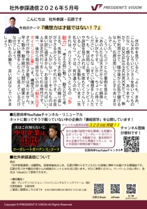 主催: 株式会社プレジデンツビジョン http://www.presidents-vison.com お問い合わせ先 presidents@presidents-vision.com ジャパンコンサルティングファーム(株) 079(246)5018 / info@japan-cf.com WEB申し込み QRコード 目指すべき姿を経営者と共有し、 経営課題を的確に発見し、 行動に落とし込んでいくことで、 社外にいながらも参謀としての役割を担う 東京 大阪 カリキュラム 東京 大阪 カリキュラム 3/6 (土) 3/27 (土) SME⑤ 資金戦略 (長期:投資採算/短期:売掛&在庫) 第6回 10/3 (土) 10/24 (土) 社外参謀概論/総合診断実例 (ビジョン→戦略→組織→ヒト→カネ) 第1回 4/10 (土) 4/24 (土) SME⑥ コスト総点検のやり方 相続・事業継続 第7回 11/7 (土) 11/28 (土) SME① ミッション言語化スキル ビジョン数値化スキル/逆算による 理想の収支構造作成 第2回 5月(未定) 東京にて 合同開催 SME⑦ プロフェッショナル講義 ~組織活性化事例~<JCF中先生> ※第8回のみ9時開始/18時終了 第8回 12/5 (土) 12/19 (土) SME② 戦略思考 ビジョン到達のため戦略構築スキル 第3回 6/19(土) 大阪にて 合同開催 SME⑧卒業課題プレゼン&最終審査 社外参謀スキル&マインド総括 今後のJCFでの活動について 18時~卒業パーティー 第9回 1/9 (土) 1/30 (土) SME③ PDCAサイクル・行動具体化メソッド ヒアリング技法 第4回 2/13 (土) 2/27 (土) SME④ 中期経営計画の実際 第5回 総合コンサルタント になる! ジェネラル ■社外参謀大学カリキュラムは全9回、9ケ月間の充実したカリキュラム <開催時間>各回10時~17時(zoom配信あり/終了後延長戦(懇親会)あり) 4名/講座 定員 10万円 入学金 定価140万円(税別) ※早期申し込み価格 2026年5月末 130万円(税別) 2026年6月末 135万円(税別) 2026年7月末 138万円(税別) ※分割可、2~10回にて応相談 授業料 ・全講義受講料・資料代 ・全講義録画配信 ・受講期間中の相談無制限 ・講義で紹介するコンサルツールの利用権 ・個別のクライアント案件の相談 ・受講生限定のグループページへの招待 ・卒業後、認定社外参謀になれる権利 内容 ~社外参謀を 詳しく知りたい方へ~ 主催 ジャパンコンサルティングファーム(株) 経営に深く入り込み成果を残す コンサルメソッド大公開! zoomセミナー ※セミナー後、社外参謀養成大学説明会あり 詳細はこちら⇒